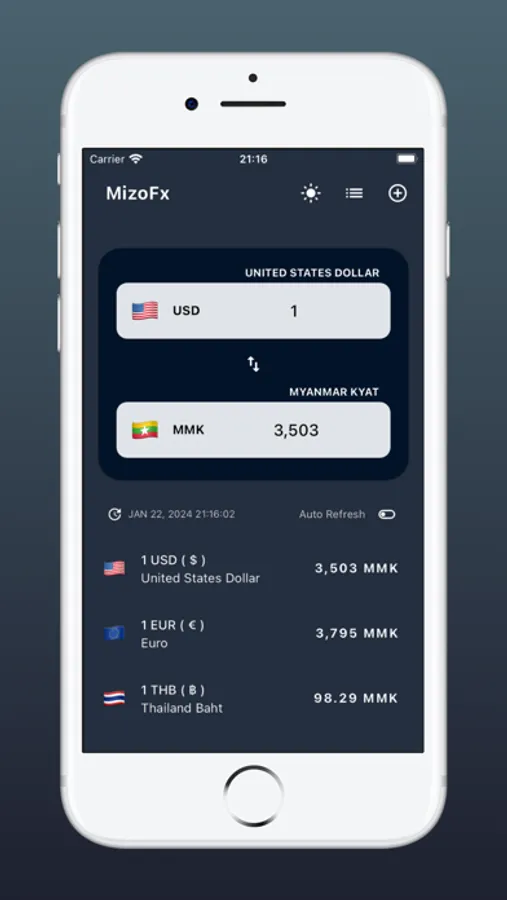 An app that calculates the real market rate of the Myanmar Kyat based on P2P services. Kyat rates can be compared to multiple currencies simultaneously, and the app offers a currency calculator to convert any quantity between MMK and any other currency.