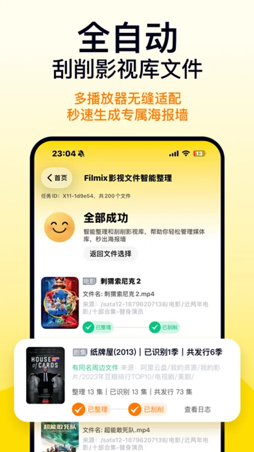 1. Cloud Automation (New) Say goodbye to keeping the app open! Filmix V2.8 introduces server-side processing. Simply initiate a task, and all identification and scraping are performed automatically in the cloud. You'll receive an instant notification when it's done. It saves time, battery, and effort.