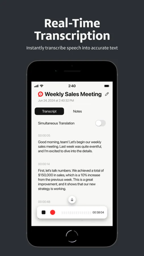 * Voice Transcription: Instantly convert speech into verbatim transcripts, facilitating subsequent applications.
