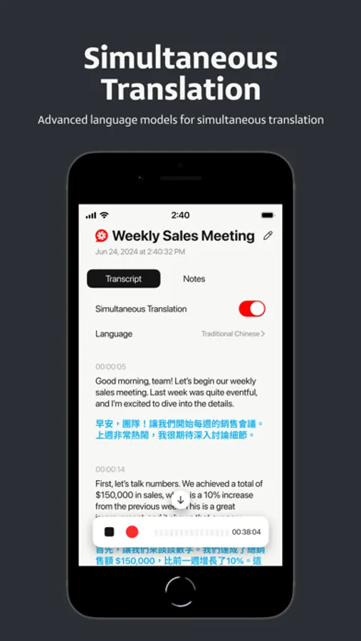 * Real-time Translation: Utilize cutting-edge language model technology to achieve real-time translation of transcript content, enhancing communication efficiency.