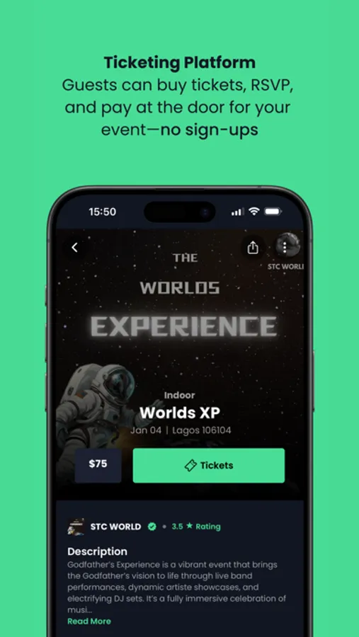 Ticketing Platform: For guests to buy tickets, RSVP, and pay at the door for your event no registration required.