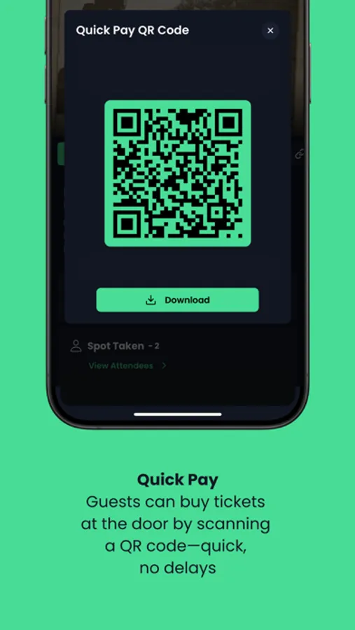 Quick Pay: Allows guests to buy ticket at door for your event with just a QR code and a single click.