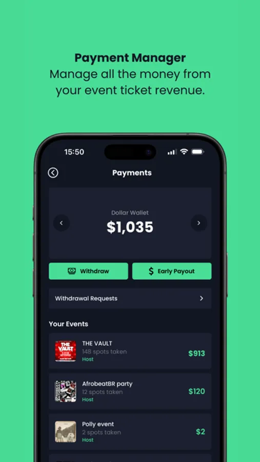 Payment Manager: For managing and monitoring all money and ticket revenue from your event.