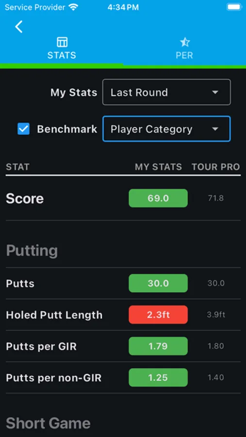 * Benchmarking: Compare your performance against various golfer categories, including Tour Pros, Elite Amateurs, and different Score and Handicap Ranges.