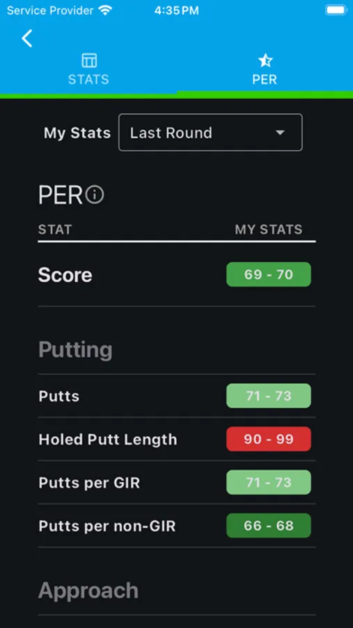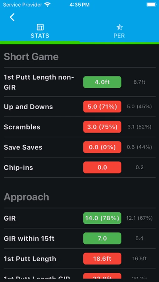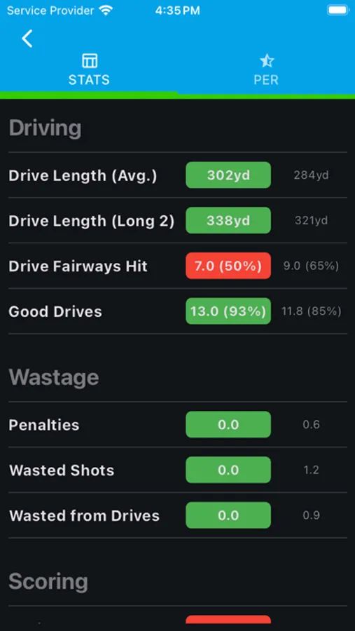 * In-Depth Statistics: Gain insights into your performance with detailed statistics in categories such as Putting, Short Game, Approach, Driving, Wastage, Scoring, Hole Score, and Section To-Par.