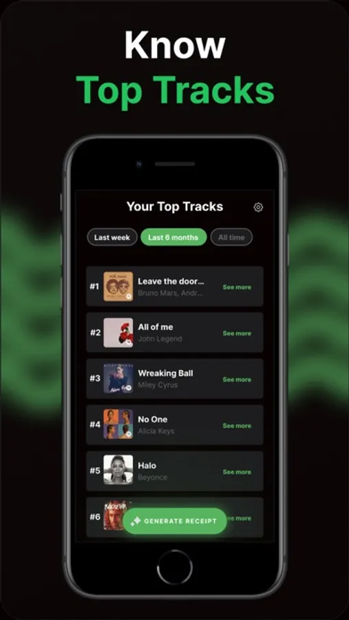 Receiptify offers an innovative way to showcase your favorite Spotify tunes by generating a music receipt displaying your top 10 songs over various periods: the past month, the last six months, or all-time.