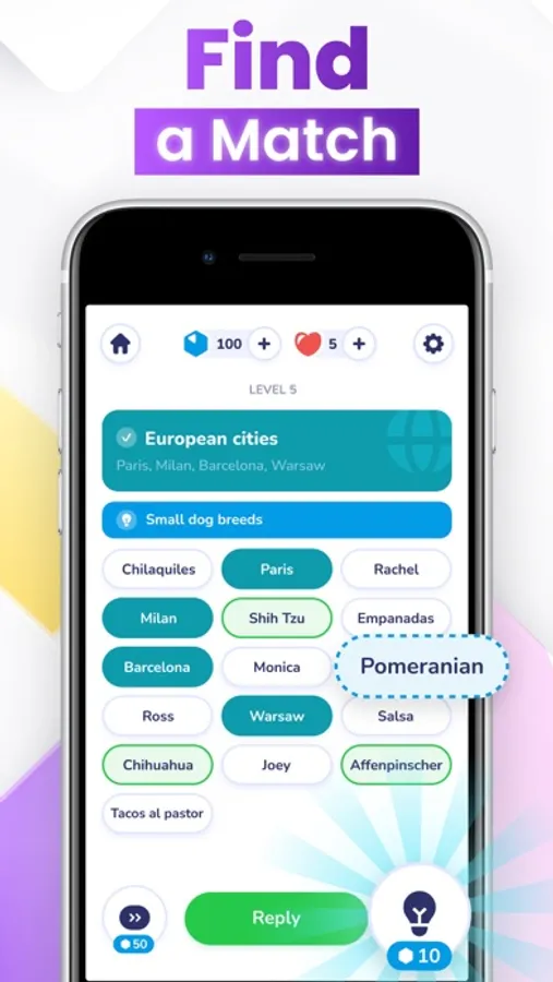 - If you get stuck, use the hints to reveal a word or shuffle the set for a fresh perspective.