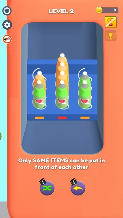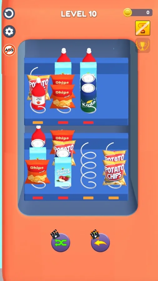 In "Vending Machine Sort Master," you find yourself in charge of a bustling, multi-tiered vending machine that's bursting with a diverse array of snacks and beverages. Your objective is to efficiently sort and organize the items, ensuring that each row is perfect and ready for the eager customers.