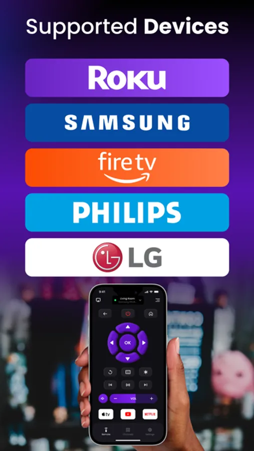Control all your smart TVs in one place!This useful app turns your phone into a universal remote for all the TVs in your home. No more searching for remotes!
