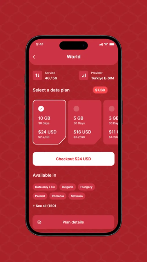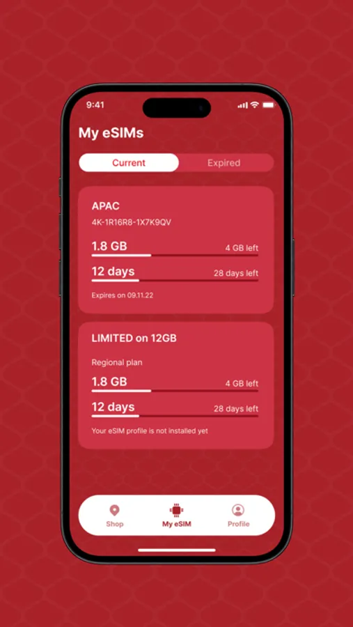 Once a plan is chosen, the app provides a user-friendly guide to activate the eSIM profile, ensuring instant internet connectivity in any of the covered countries.