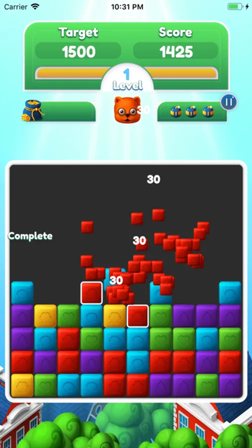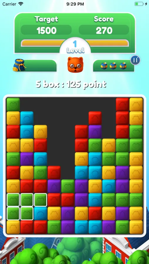 -You can erase same pieces which are connected vertical or horizontal, as you click them. If there are pieces over the erased pieces, they will drop down. If all pieces on the vertical line are erased, all pieces on the right side will slide left.The score is ([the number of erased pieces] * ([the number of erased pieces) * 5. Therefore, connect same pieces as more as you can, and erase them at a time, so that you can aim the higher score.