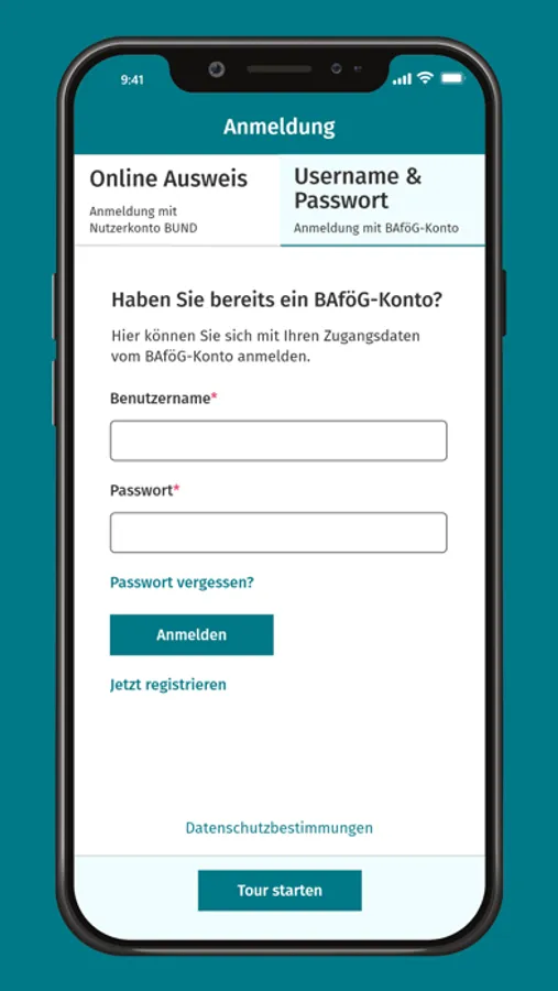 Die App BAföG Digital unterstützt Sie bei Ihrer Antragstellung für Ausbildungsförderung (BAföG). In der Ausgangsversion erfordert die Nutzung der App ein Konto auf der Seite von BAföG Digital. Wir empfehlen Ihnen die Anmeldung per BundID als sicherste Methode, Sie können sich aber auch ein einfaches Nutzerkonto auf BAföG Digital anlegen. Mit diesem Konto können Sie sich auch in der App anmelden. Die App unterstützt Sie bei Ihrem begonnenen Antrag auf Ausbildungsförderung, in dem Sie von Ihrem Mobilgerät Uploads (z. B. Fotos oder Dateien) zum Antrag hinzufügen können. Außerdem erhalten Sie Informationen zu Ihrem zuständigen Amt. Sofern Sie den Push-Nachrichtendienst aktiviert haben, werden Sie über Neuigkeiten zu Ihrem Antrag informiert.