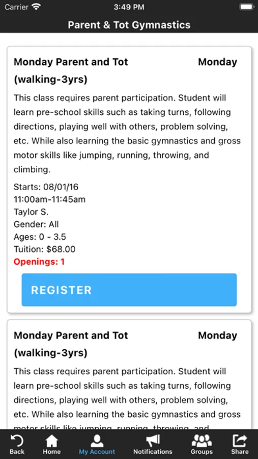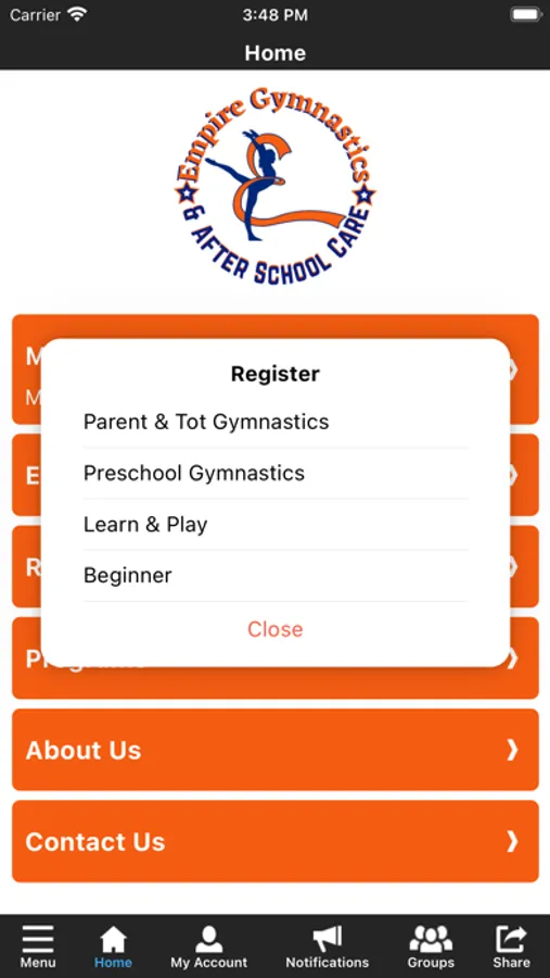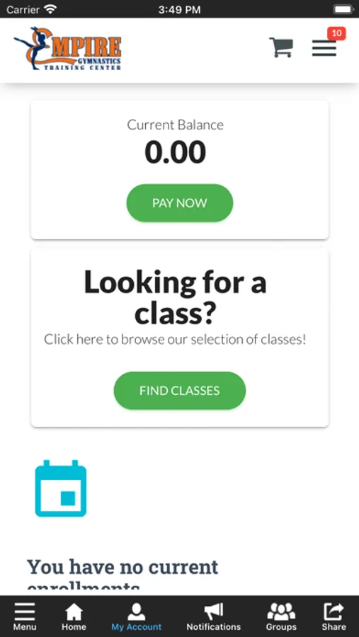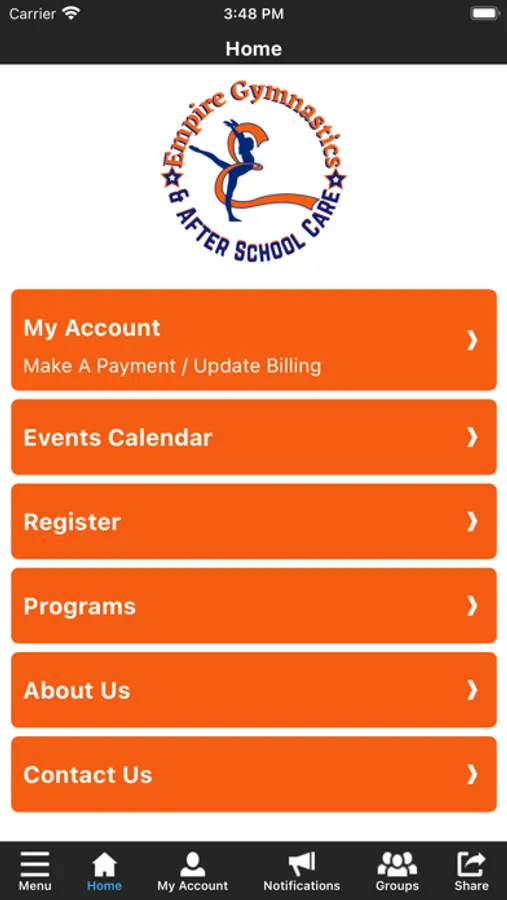 The (Empire) app allows you to manage your account with ease, register for classes, parties, and special events. You'll also receive important notifications about class changes, closings, registration openings, special announcements, and upcoming events.