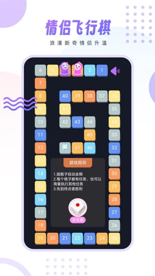 基于经典飞行棋规则,每一格棋盘都隐藏了一个“亲密任务”,如拥抱、亲吻、对对方说暖心的话等。这不仅让游戏变得充满乐趣,更是情侣互动的新桥梁,让每一步都充满期待与浪漫。