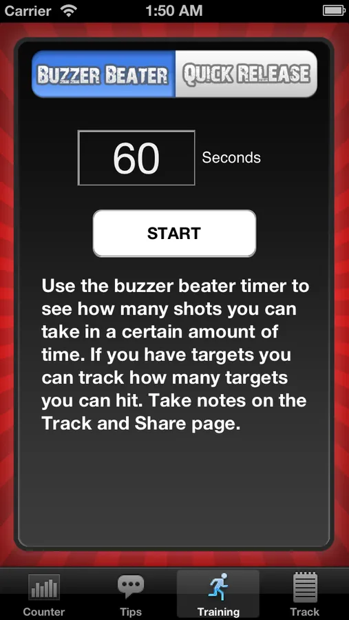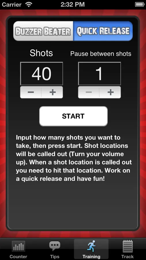 • Training - The app comes with two training tools, the buzzer beater and the quick release.