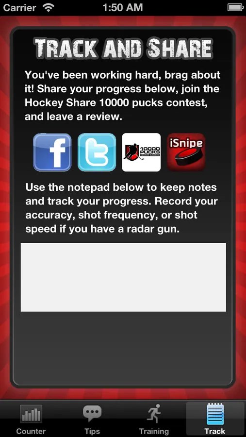 • Tracking - The app comes with a built in notepad that allows players to keep track of their achievements such as accuracy and shot velocity (if they have a radar