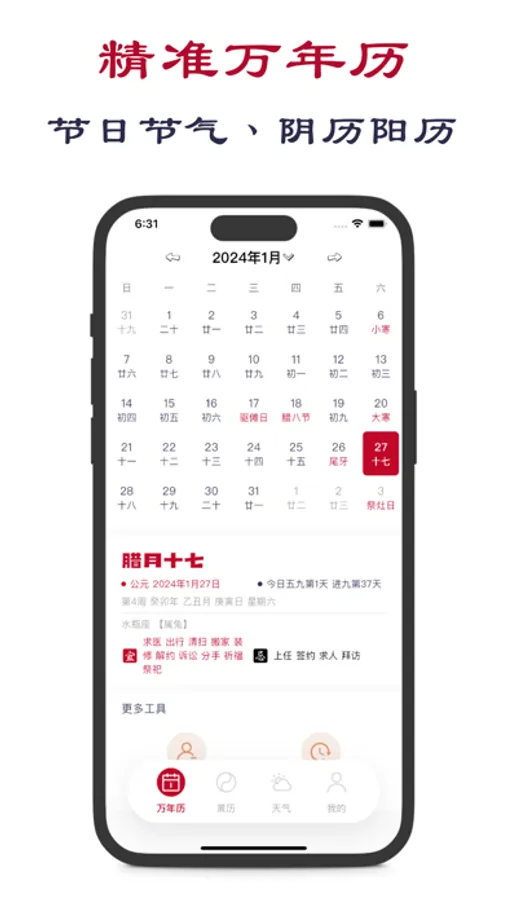 在这里,您将发现结合公历、农历、天气、假期安排、黄历等综合日历功能,以及独特的趣味内容和实用指引,帮助您优化每一日的生活体验。