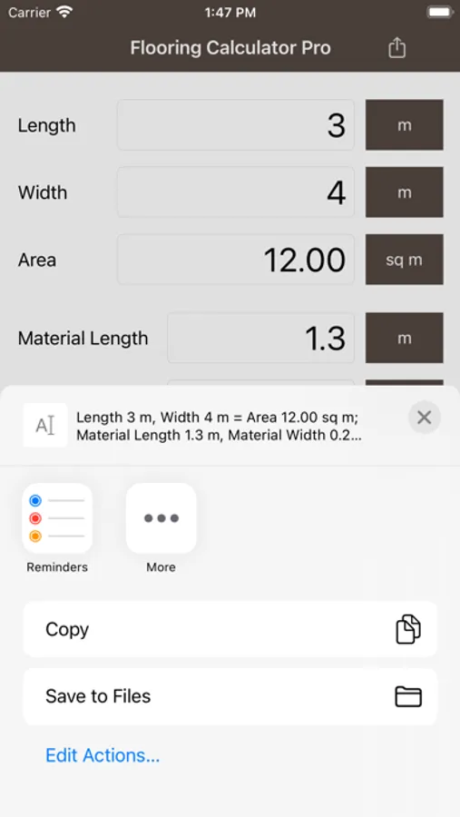 Flooring Calculator Pro can also quickly determine flooring based on width and length expressed in: