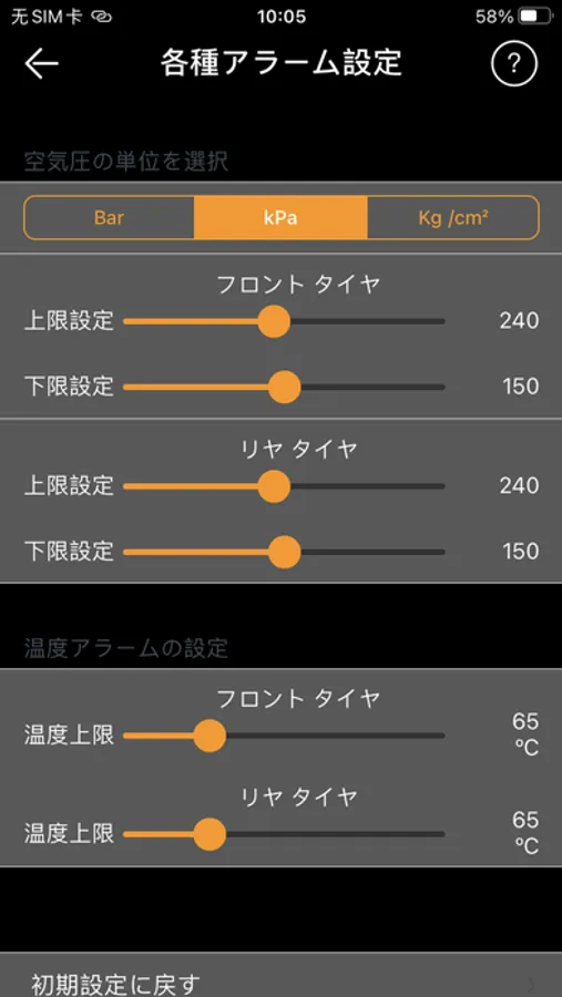 Bluetooth接続によるタイヤの空気圧と温度のリアルタイム監視