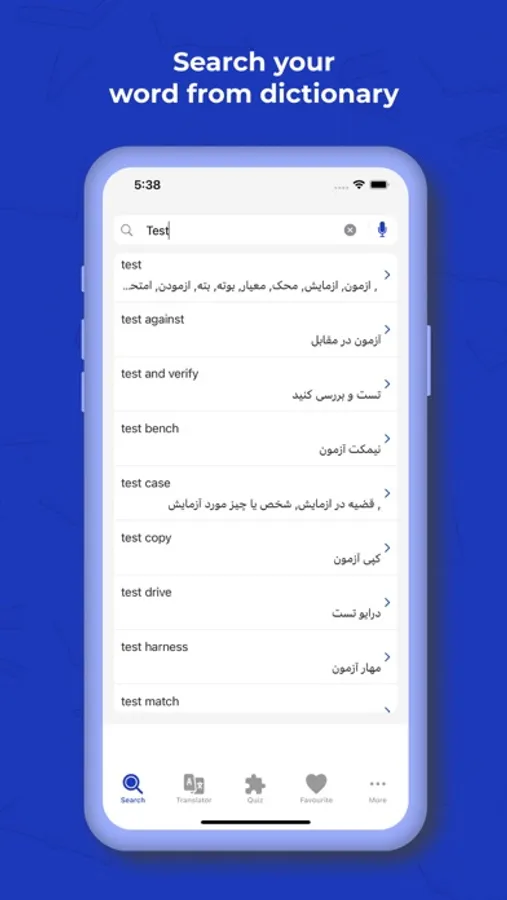 Revolutionise your language exploration with our 'Speech to Text' feature in the English to Persian Dictionary. Now, you can effortlessly search for words using your voice! Our user-friendly app provides an immersive experience where you simply speak the English word you want to translate into Persian.