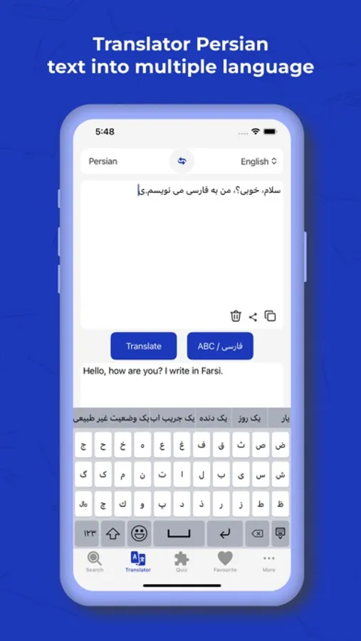 English to Persian Dictionary Offline will provide Persian Keyboard for Writing in Persian within translator page. With this feature, you can enhance your communication and understanding of Persian like never before.