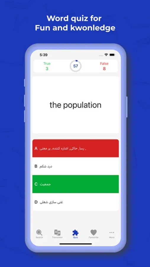 Challenge your language skills with our engaging English to Persian Word Quiz Game! Test your vocabulary, expand your linguistic horizons, and have fun while learning. This interactive quiz game offers an exciting way to improve your command over both English and Persian. With a wide range of words and challenging questions, you can enhance your language proficiency at your own pace. English to Persian Word Quiz Game is your perfect choice.