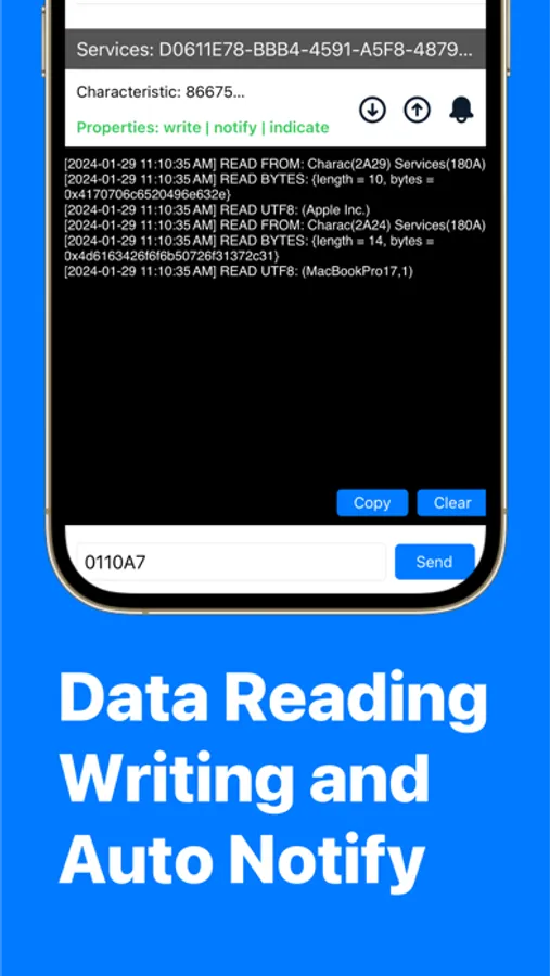 • Read any characteristic's value, even for services not well known and are custom to the device being interrogated.