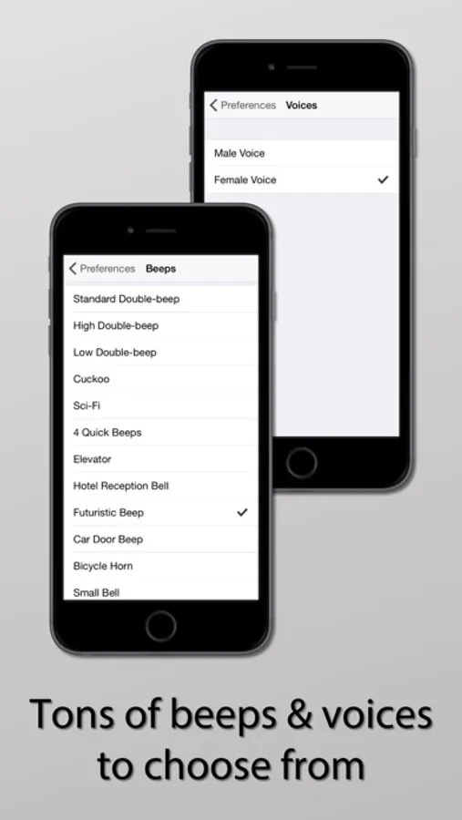 • Choose between beep sounds or human voices as the alerts sound. The human voices tells you the hour!