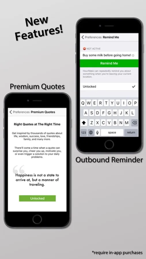 • HourMate can also repeatedly remind you about something when you're leaving your current location. It's called Outbound Reminder. Unlock it through in-app purchase.