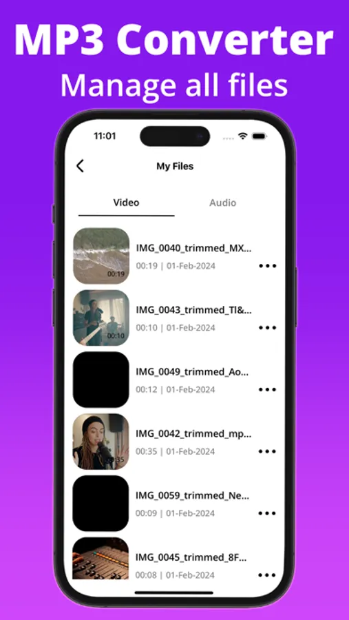Convert videos into audio or MP3 and keep them organized within Video to MP3 : Video to Audio App.