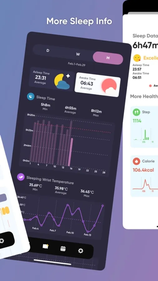 - Explore your sleep history with Day, Week, Month, and Custom Date