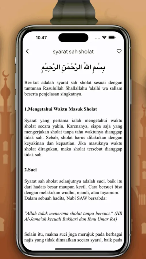aplikasi tuntunan sholat fardhu dan sunnah lengkap beserta doa, dan dzikir. berisi tuntunan dan tata cara sholat secara lengkap, mulai dari cara bersuci (wudhu & tayamum), cara melaksanakan sholat (gerakan dan bacaan-nya). juga terdapat hukum hukum seputar sholat, seperti syarat sah, rukun, sunnah, yang membatalkan, dan banyak lagi pembahasan seputar shalat.