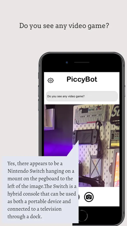 1. Video and Image Description: Launch PiccyBot and either use the camera or select an image or video from your gallery. PiccyBot analyzes the visual content and provides a detailed description.