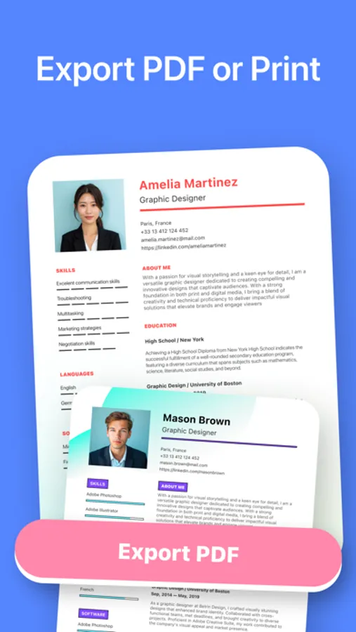 Effortlessly craft a sophisticated and professional PDF resume using our intuitive application tailored for job applications. Select from a diverse range of expertly designed resume templates guaranteed to enhance the visibility of your resume. Benefit from convenient features such as swift previews, job description recommendations, and writing tips to assist you in producing an impressive resume. Elevate your application with premium templates available for purchase, providing a personalized touch. Enjoy an ad-free environment and seamless PDF support, enabling you to effortlessly download, print, email, or save your resume for future use.