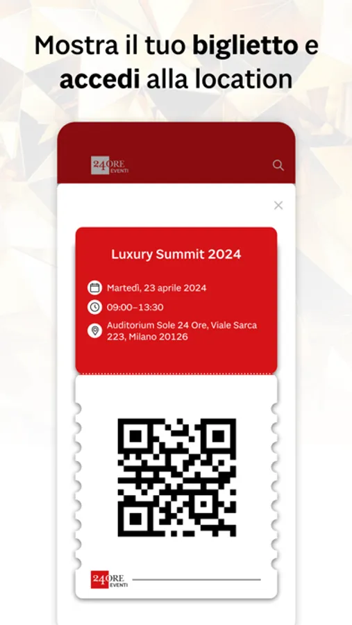 - Salvare il biglietto virtuale con QR Code per saltare la fila in fase di accreditamento