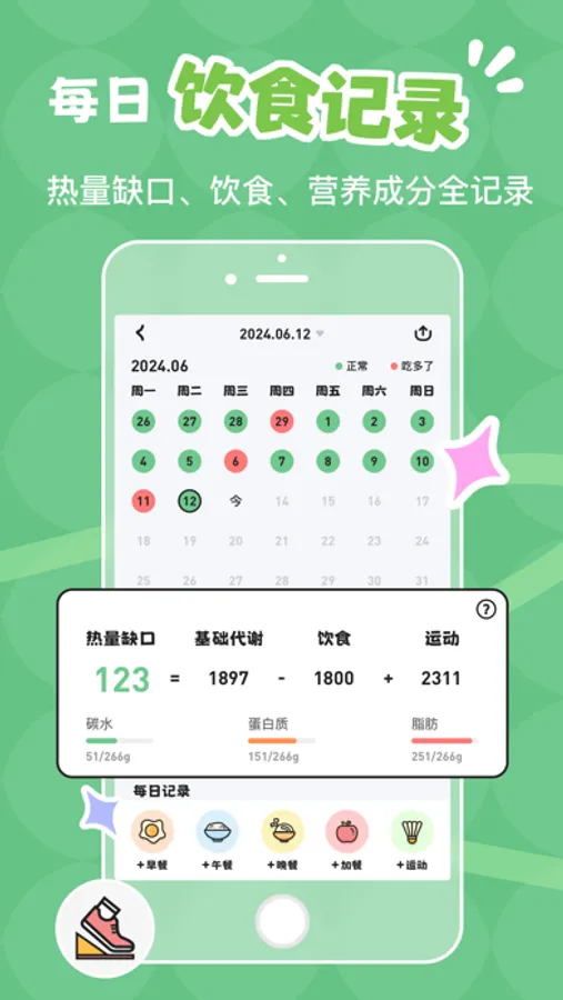 5.可视化效果:通过图表和数据分析,你可以清晰地看到每一顿的减肥效果,为你的瘦身之路增添动力。