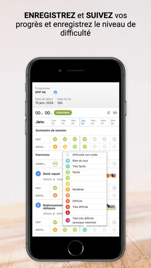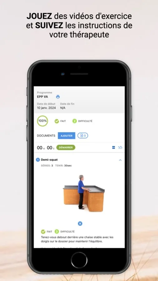 Emmenez vos exercices partout avec vous grâce à notre application. Consultez le programme d’exercices recommandés par votre thérapeute, apprenez-en plus sur votre condition, suivez votre progression, recevez des rappels, partagez de l'information et atteignez vos objectifs de santé plus rapidement. Notre application PhysioExtra est votre partenaire de réadaptation au quotidien !
