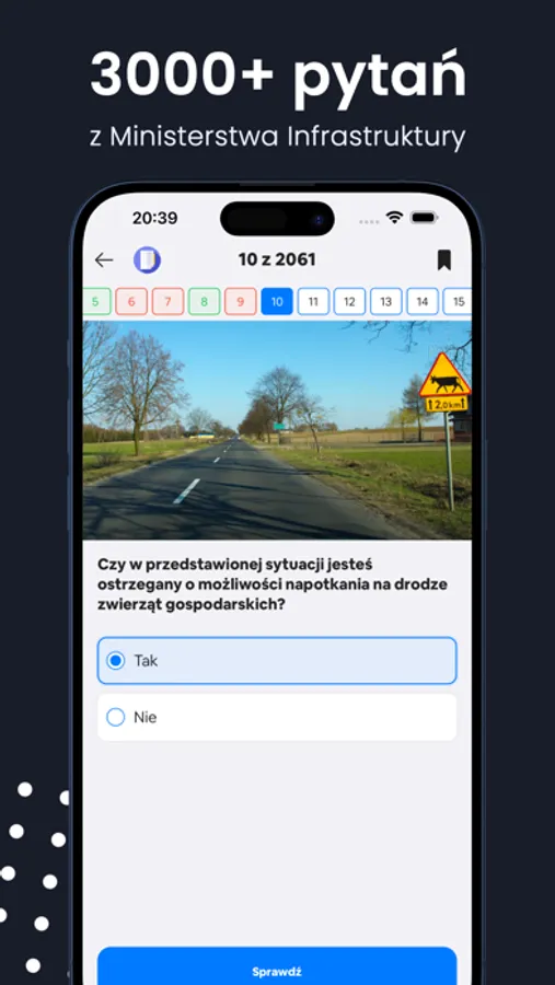 • Bezpośredni dostęp do aktualnych pytań - Nasza aplikacja zapewnia Ci dostęp do najnowszej bazy pytań na prawo jazdy, takiej samej jak na egzaminie w WORD.