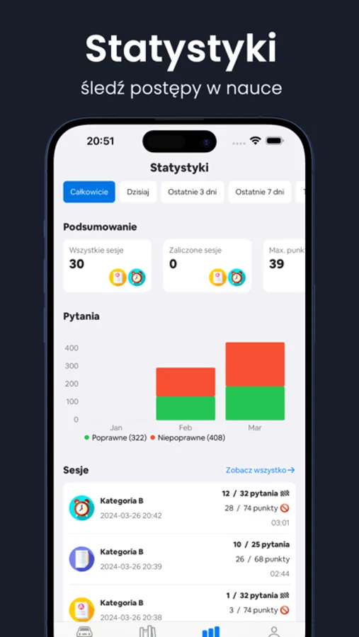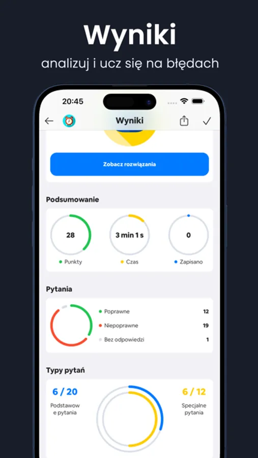 • Śledzenie postępów i statystyk - Nasz zaawansowany algorytm pozwoli Ci monitorować postępy w nauce, skupiając się na tych obszarach, które sprawiają Ci najwięcej trudności.