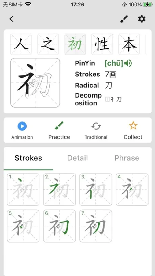 Animations and handwriting: animations are vivid and handwriting and copying help you learn Chinese characters faster.