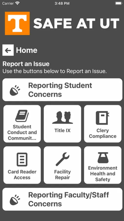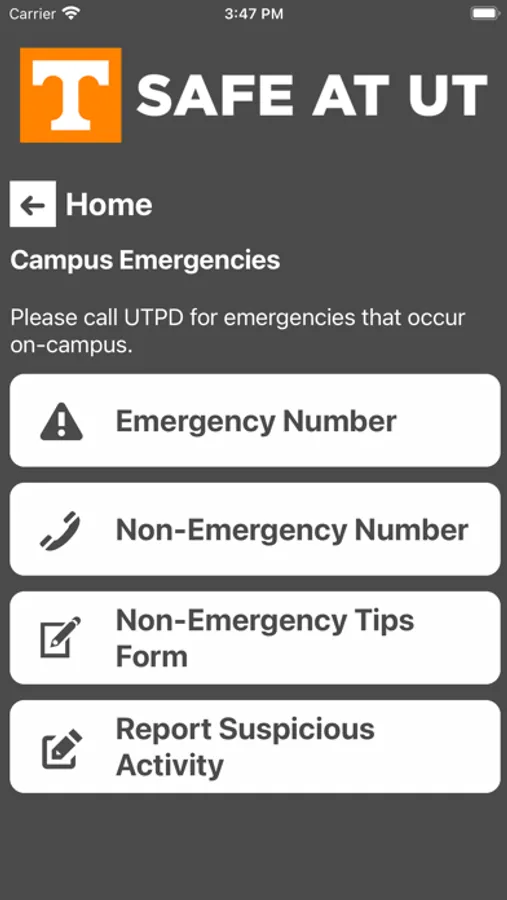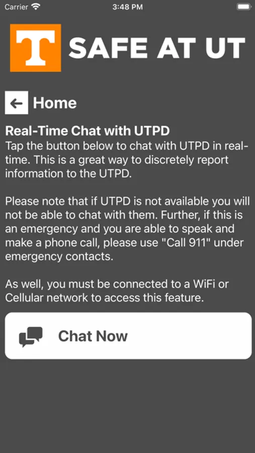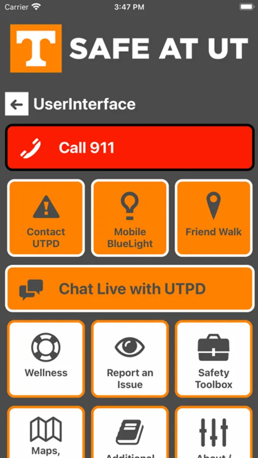 - Chat with Security: Communicate live with safety staff at University of Tennessee Knoxville via chat.