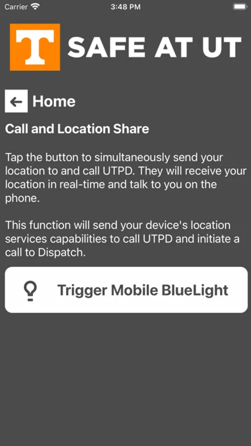 - Panic Button / Mobile Bluelight: Send your location to University of Tennessee Knoxville security in real-time in case of a crisis