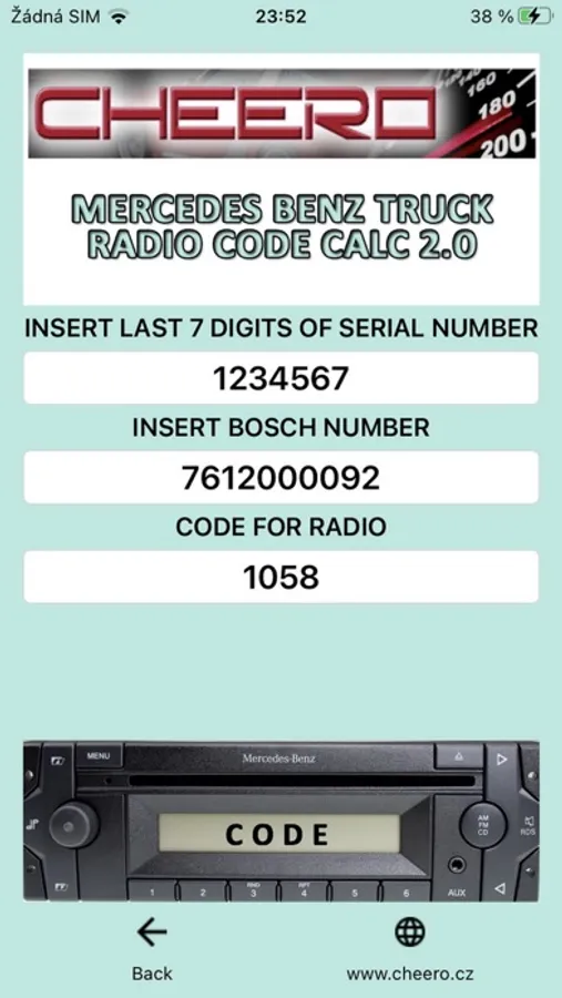RADIO CODE GENERATOR for MERCEDES BENZ TRUCKS - ATEGO ACTROS - BLAUPUNKT BOSCH CALAIS BECKER VISTEON.