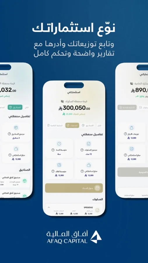 • إدارة موحّدة: تابع جميع استثماراتك (صكوك، صناديق، وملكية خاصة) عبر وجهة واحدة.