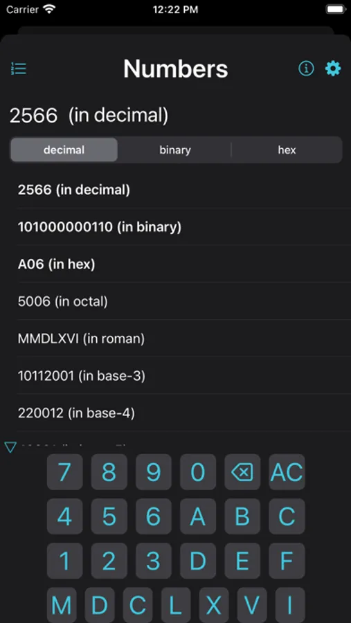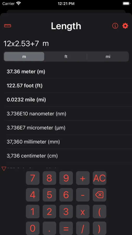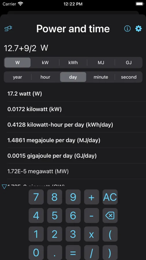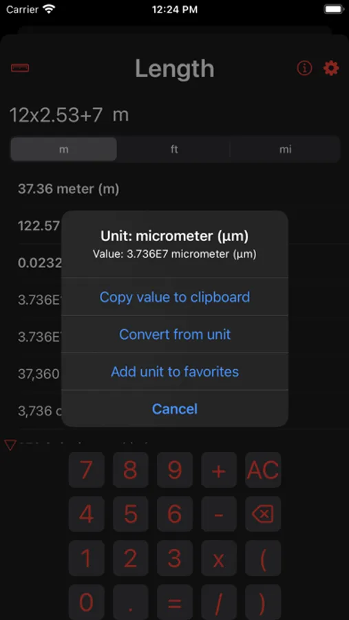 You can use the number pad to change what value to convert. For many unit sets you can use this as a calculator: the equation in the calculator is evaluated in the background and the result is converted to all units available.