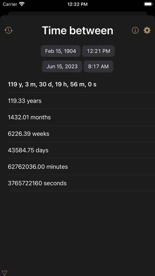 Copying results: long-press the result row that you would like to copy. A box opens to copy the results to the clipboard. For the time-related unit sets, a single tap is sufficient because of the update in the numbers occurring every second.
