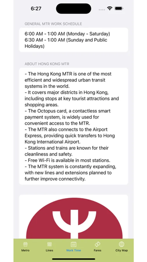 "Hong Kong Metro Map" is not just an app; it's your dedicated travel companion, ensuring that your metro experience is seamless, efficient, and enjoyable. Whether you're heading to work, exploring the city's cultural landmarks, or visiting friends, our app will be there to guide you every step of the way.