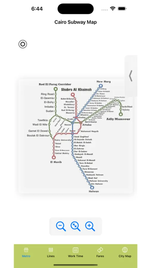 - City Map Integration: Seamlessly switch between the metro map and the city map. Understand how the metro lines connect with the streets and neighborhoods of Cairo, making it easier to plan your overall journey and explore the city.