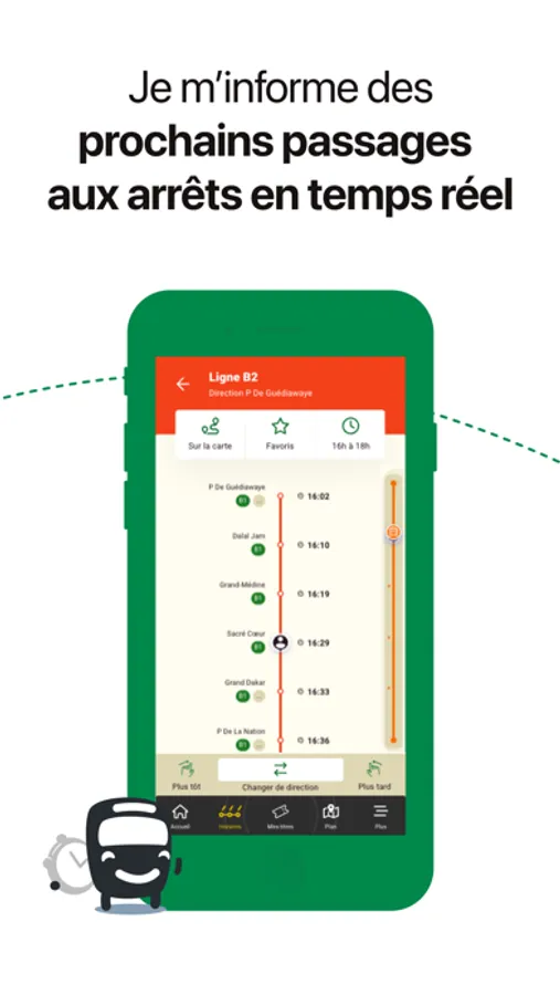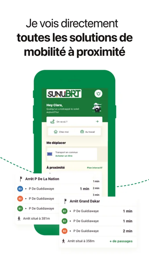 Avec SunuBRT, tu retrouves les horaires des transports de Dakar dans ton smartphone :
