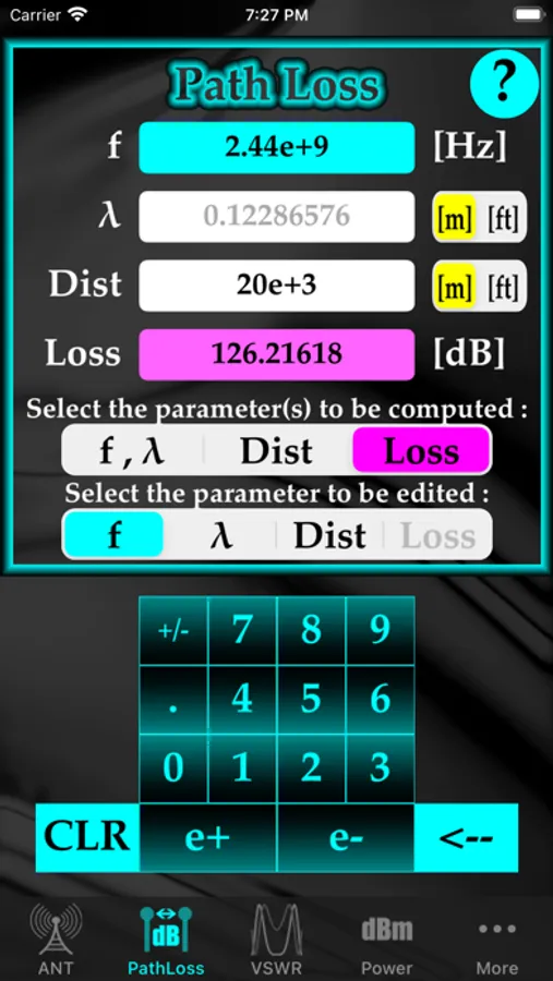2) Path Loss in Free Space : you can compute the path loss in free space or solve other parameters (frequency, wave length, or distance).